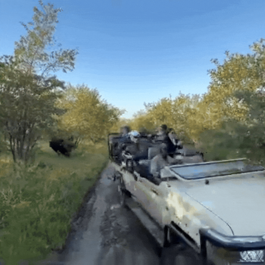 🐃 Watch out for the buff! These cape buffaloes can appear out of no where and, as these tourists will tell you; They. Are. Moving.