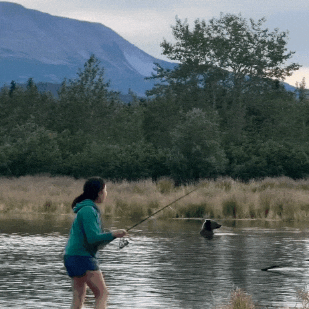 🏔️ Are Alaska kids built different? I mean, when it comes to taking a cast while a big ol’ bear takes a swim in front of you, I’d say so.