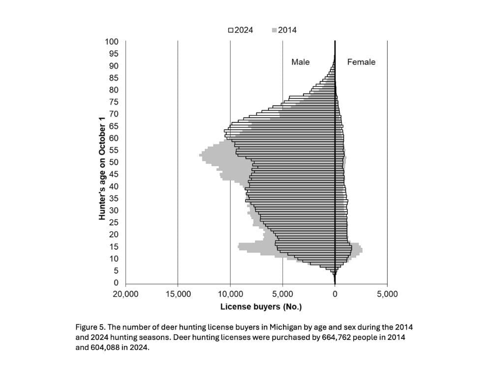 The times are a changin’, and for the state of Michigan and its deer populations, it’s not necessarily a good thing. Over the past 25 years, Michigan has experienced a dramatic 30% drop in deer hunters, losing approximately 200,000 participants since 1995, according to the Michigan Department of Natural Resources. This decline, which has seen the state’s hunting community shrink from about 670,000 hunters to 470,000 by 2023, extends far beyond a shift in recreational habits. Decades later. It’s now creating a ripple effect of challenges for wildlife management, public safety, agriculture, and conservation funding. With deer populations soaring past 2 million, particularly in southern Michigan, the state faces mounting issues they are now forced to reconcile with fewer boots on the ground and a shrinking pot of available funding.
