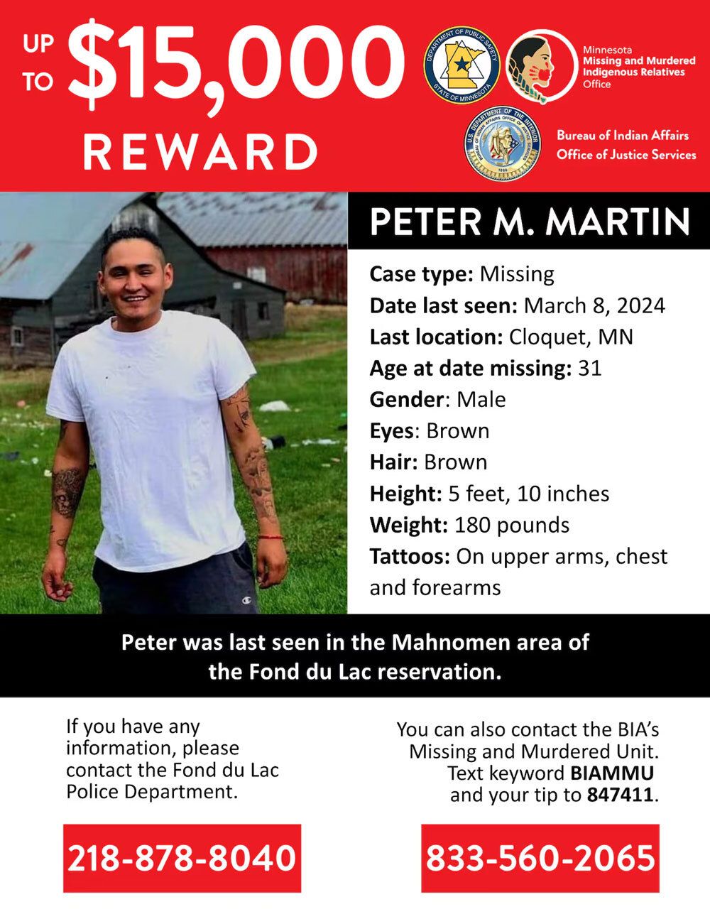 Missing person Peter Martin flyer | Fond du Lac Band of Lake Superior Chippewa