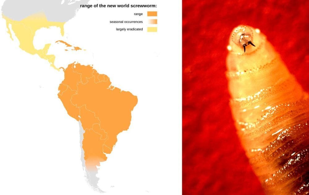Just a few weeks later, a livestock infestation was confirmed in Nuevo León, Mexico—only 70 miles from the Texas border near Laredo. That case, detected just last weekend, marks the northernmost detection yet, following earlier 2025 cases in Chiapas and Oaxaca, Mexico. The New World screwworm (Cochliomyia hominivorax), a flesh-eating larval stage of a blowfly, has surged northward from Central America, escalating fears for Texas’s white-tailed deer, exotic game, and the state’s billion dollar livestock industry. No U.S. animal cases have been reported just yet, but the proximity has prompted Texas to halt Mexican cattle imports and tighten border controls.