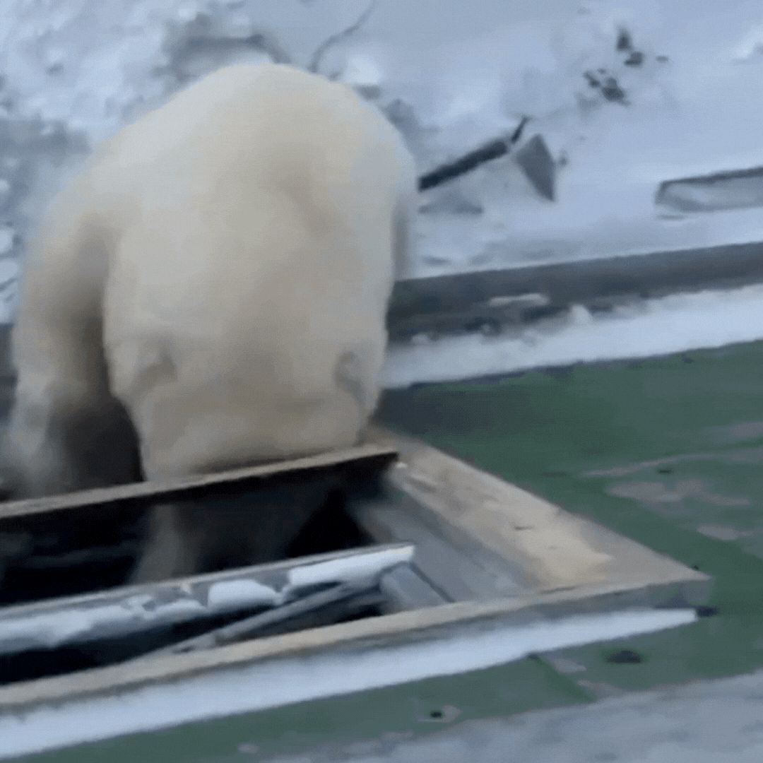 🐻❄️ When you work remotely, you sometimes have uninvited guests. From what I can gather (my Russian sucks) is that there are four people who work at this remote station somewhere in Russia. These bears constantly try to break in for a bite to eat and the dogs seem to help to put the run on them.